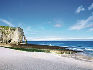 Côte d’Albâtre (suom. Alabasterirannikko) Englannin kanaalin rannikolla on saanut nimensä valkoisista liitukivikallioista, jotka nousevat jopa 100 metrin korkeuteen merestä. Étretat’n kalliomuodostelmat ovat erityisen vaikuttavia.